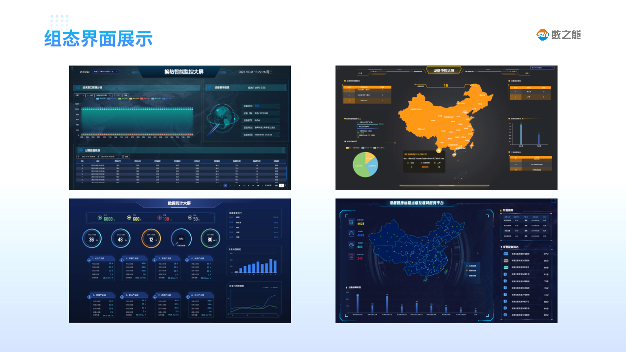 數(shù)之能工業(yè)組態(tài)平臺提供了豐富的控件庫、模板和動畫效果。即使是沒有專業(yè)編程知識的用戶,也能通過簡單的拖拽操作,迅速設計出專業(yè)、美觀且功能完備的監(jiān)控界面。從常見的設備圖形、儀表控件,到復雜的工藝流程動畫,平臺一應俱全,大大縮短了項目開發(fā)周期,降低了開發(fā)成本。