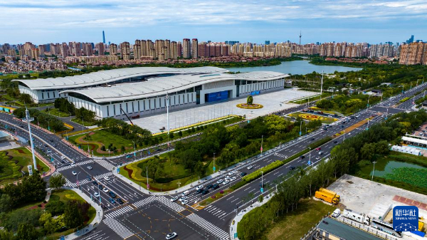 這是8月28日拍攝的天津梅江會(huì)展中心一景(無(wú)人機(jī)照片)。新華社記者 趙子碩 攝
