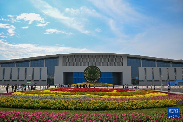 這是9月1日拍攝的天津梅江會(huì)展中心外的花壇。新華社記者 孫凡越 攝