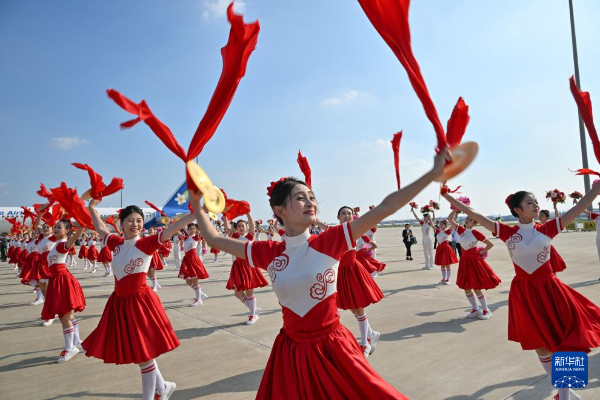 8月31日,工作人員在天津?yàn)I海國(guó)際機(jī)場(chǎng)迎接參加峰會(huì)的嘉賓。新華社記者 孫凡越 攝