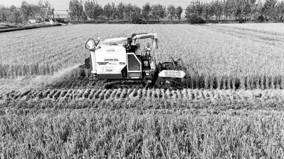 江蘇連云港無(wú)人駕駛收割機(jī)穿梭田間收割水稻。光明圖片/視覺(jué)中國(guó)