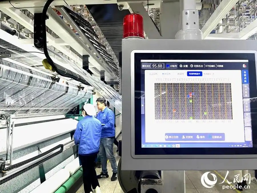 在福州新區(qū)(長(zhǎng)樂區(qū))一家企業(yè),AI智能檢測(cè)系統(tǒng)正在檢測(cè)針紡坯布上的瑕疵。人民網(wǎng)記者 陳藍(lán)燕攝